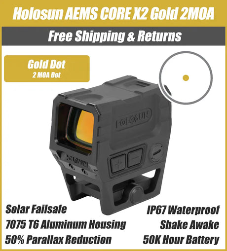 Holosun ARO Gold 2MOA Dot Only Reticle 22mm Housing, Shake Awake, 1/3 Co-Witness - ARO-GD2