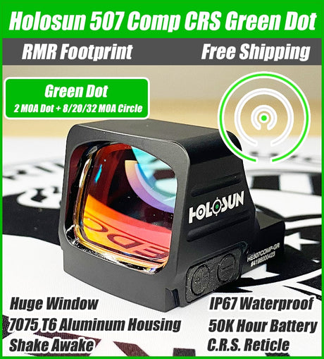 Holosun 507C X2 Green Dot ACSS Vulcan Reticle, RMR Footprint, Solar Failsafe - HE507C-GR-X2-ACSS