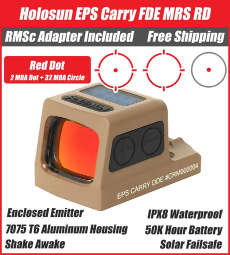 Holosun EPS Full Size Red & Green Dot Sights - Enclosed Emitter - MRS, 2 MOA, 6 MOA Reticles