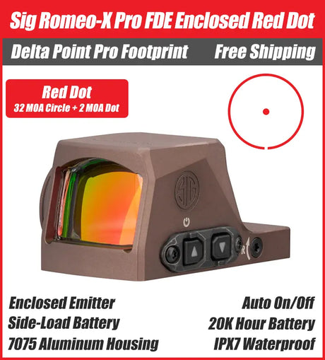 Sig Sauer Romeo X Pro FDE Enclosed Red Dot, Circle Dot, DPP Footprint, Enclosed Emitter, FDE Housing