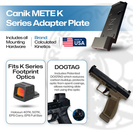$70.45Unit price /UnavailableIn stock (40 units)Canik METE Holosun 407K/507K/EPS/EPS Carry Adapter Plate - DOGTAG - Aluminum - Calculated Kinetics