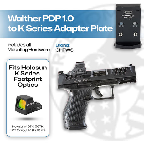 $64.99Unit price /UnavailableVery low stock (3 units)Walther PDP 1.0 to Holosun 407/507K/EPS/EPS Carry Adapter Plate - CHPWS