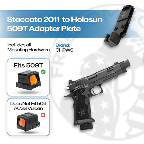 $147.45Unit price /UnavailableIn stock (21 units)Staccato Duo to Holosun 509 ACSS (Primary Arms) Adapter Plate (Steel) - CHPWS