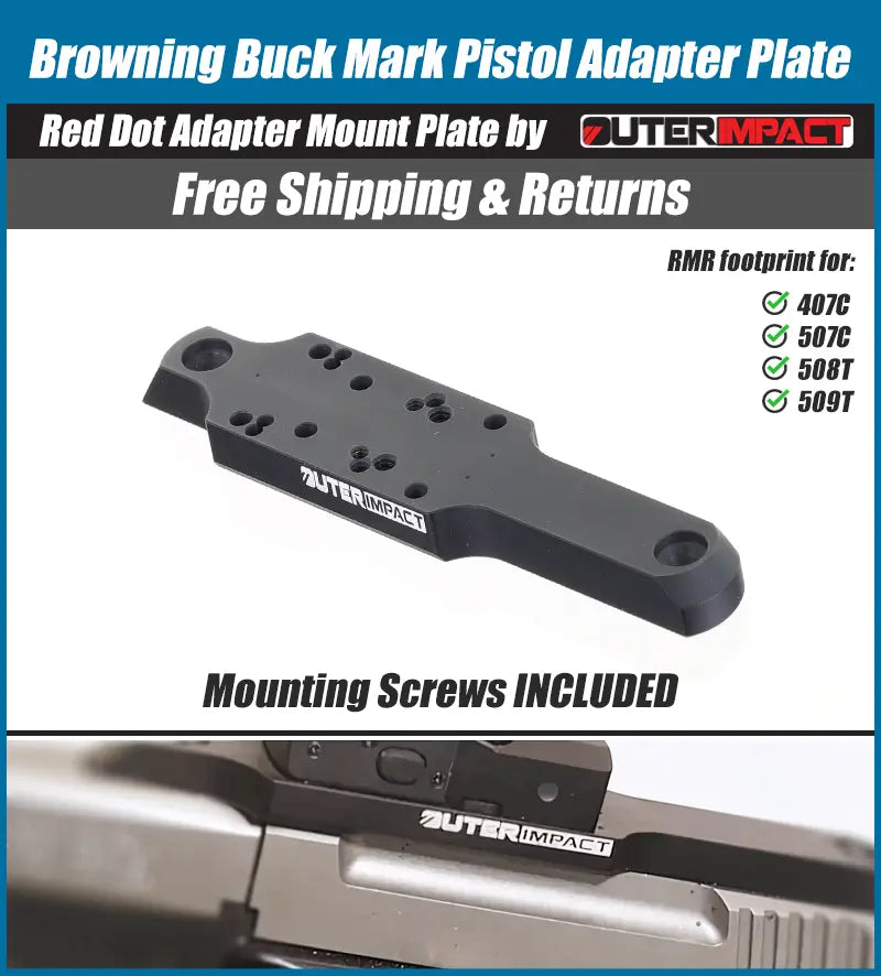 Browning Buck Mark Pistol Red Dot Adapter Mount Plate - OuterImpact is backordered and will ship as soon as it is back in stock.