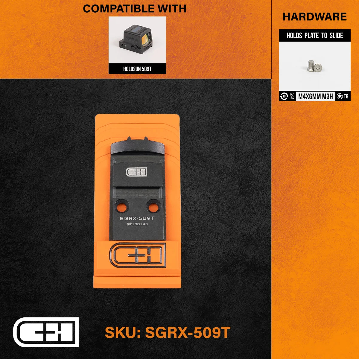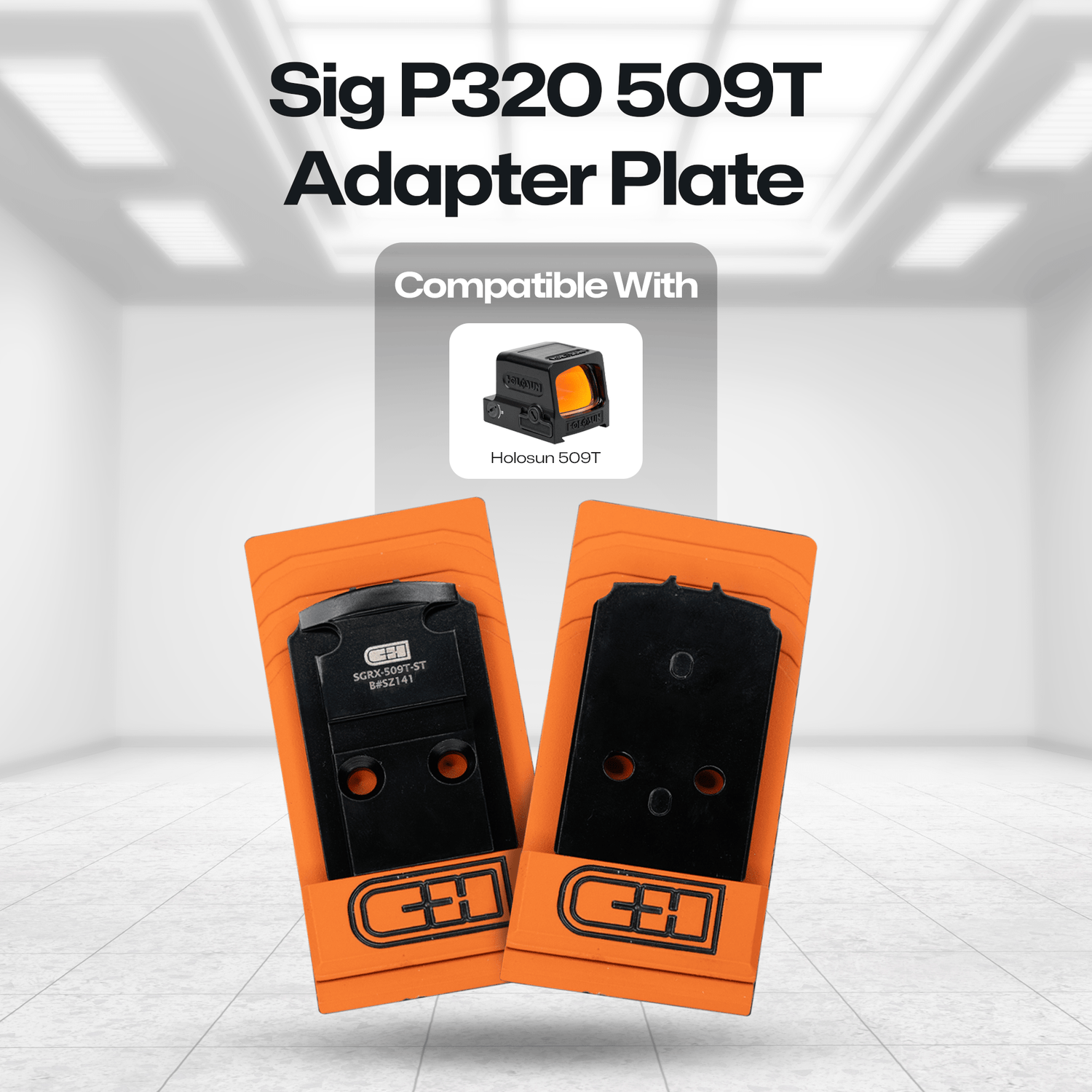 This CHPWS adapter plate will let you mount a Holosun 509T to your P320 with Romeo 1 Pro slide with or without rear dovetail sights attached.