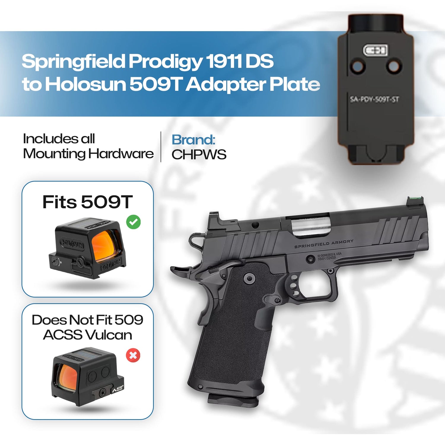 C&H Precision Weapons Prodigy to Holosun, Optic Mounting Plate, Fits Springfield Prodigy, Compatible with Holosun 509T, Integrated Rear Sight, Electro Deposited Painted Finish, Black SA-PDY-509T-RSR-ST