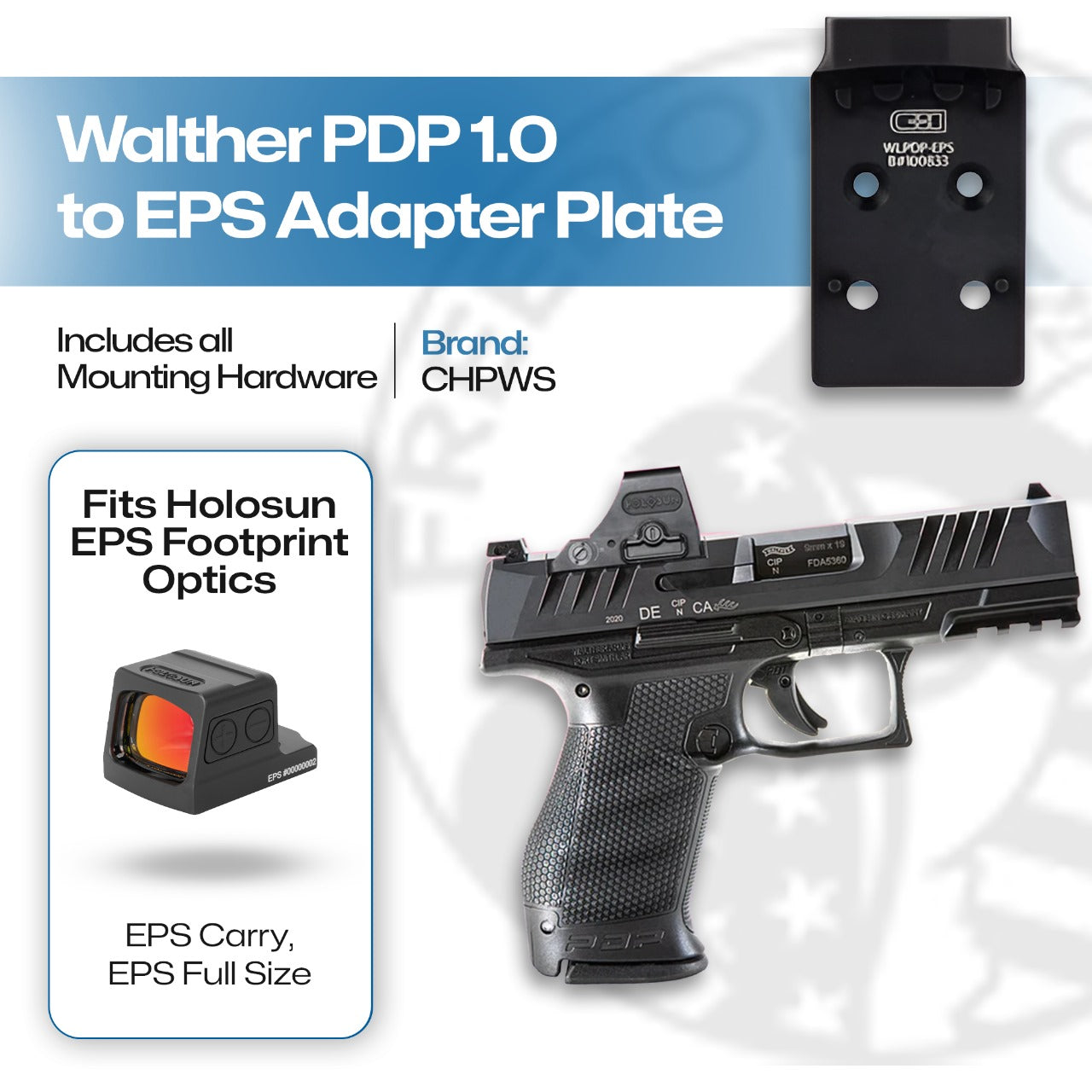 C&H Precision Weapons V4, Optic Mounting Plate, Fits Walther PDP 1.0, For Holosun EPS/EPS Carry, Anodized Finish, Black WLPDP-EPS