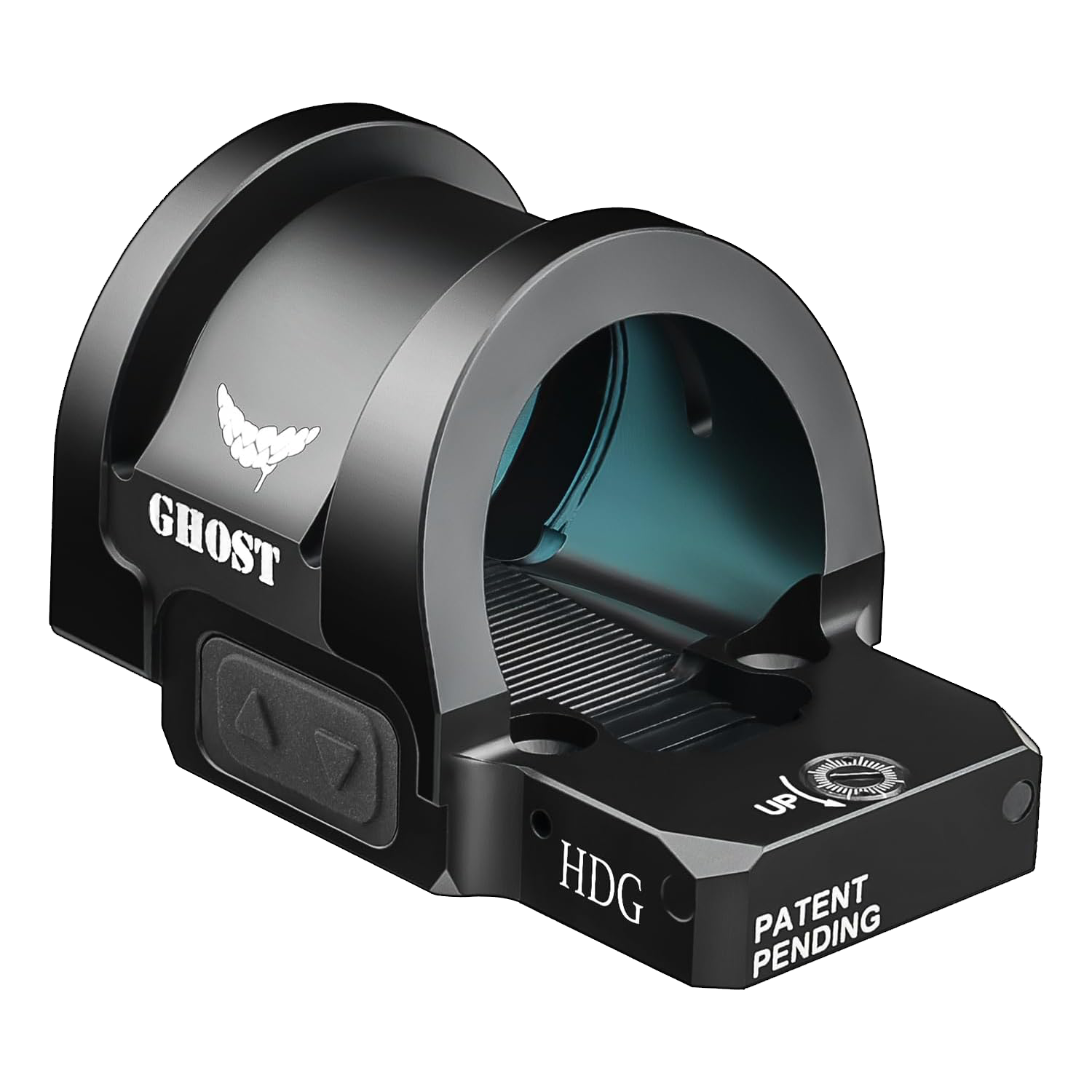 - The GHOST HDG red dot utilizes an oversized glass with a width of 26.5mm, delivering a significantly larger field of view. It has the Click MOA system with 1MOA per click. It has a Variable Reticle Technology (VRT) 2MOA red dot, 24MOA Circle, or both.