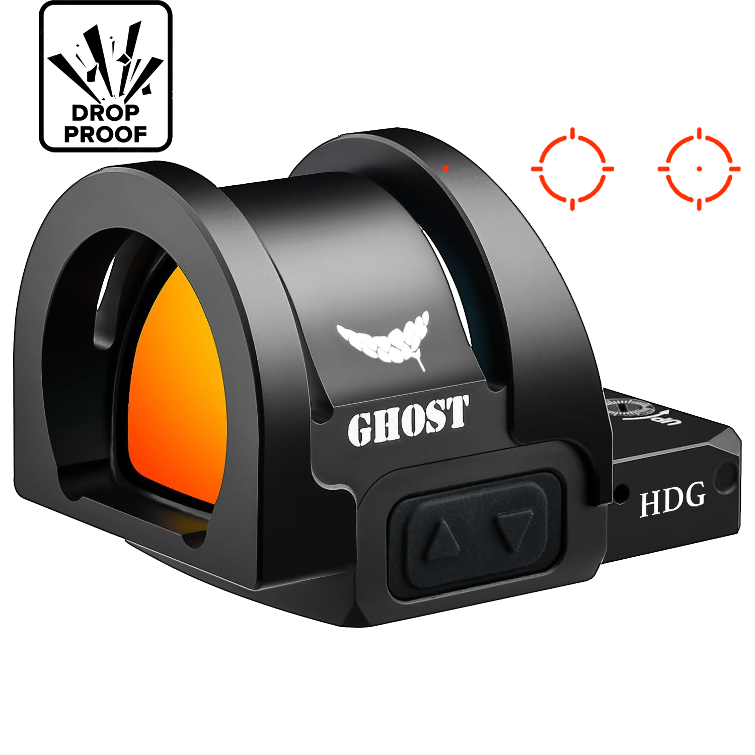 - The GHOST HDG red dot is DROP TESTED and deemed DROP PROOF for use on pistols. It is conservatively rated DROP PROOF for 6' drops, optic down, on 45oz pistols, onto concrete that you might find on the street.