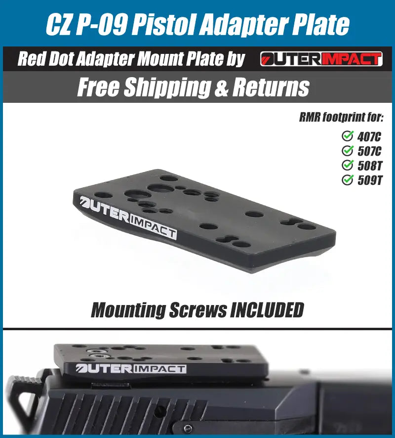 CZ P-09 Pistol Red Dot Adapter Mount Plate - OuterImpact is backordered and will ship as soon as it is back in stock.