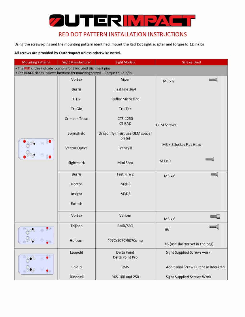 Compatible Red Dot Sights (Mounting Screws INCLUDED)
