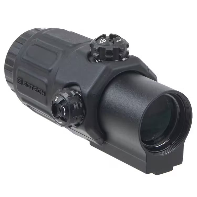 The G33 Magnifier is the selected magnifier of USSOCOM, and is compact and lightweight. The mount provides fast transitioning from 3X to 1X, and the optic offers tool-free vertical and horizontal adjustments, larger field-of-view and an adjustable diopter for improved, precise focusing. The G33 works with all EOTECH HWS models.