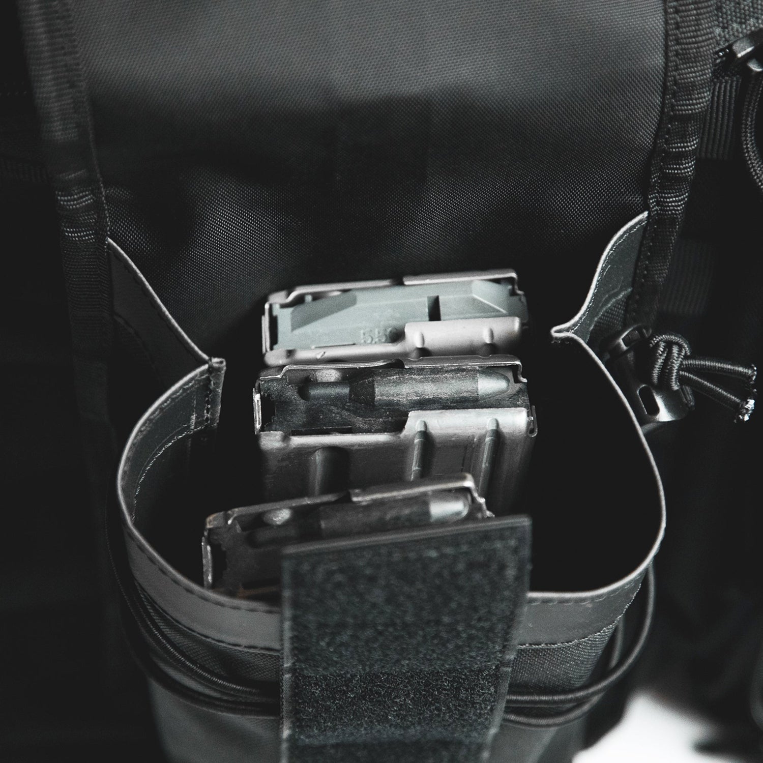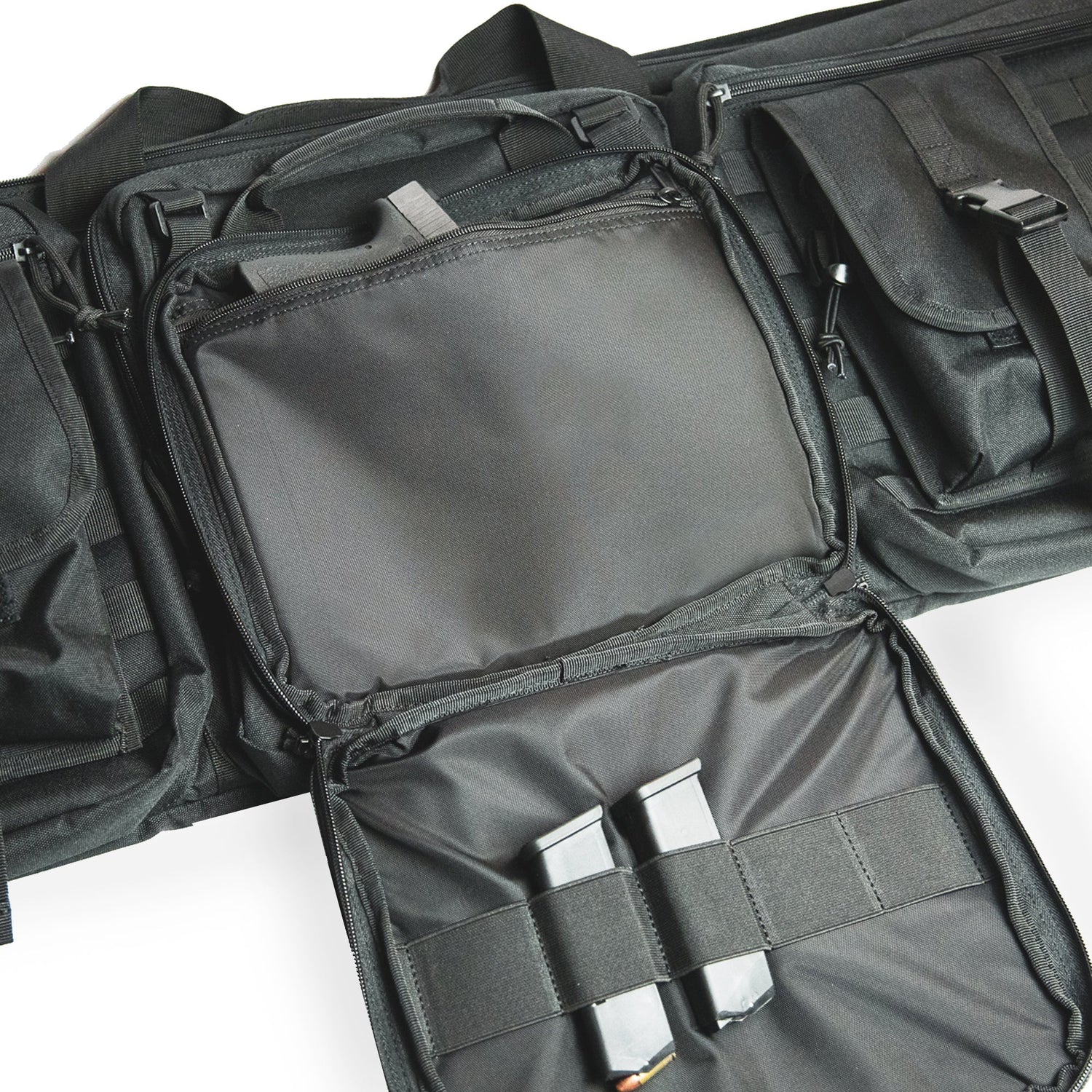 - Detachable padded pistol case with D-ring support and storage for 5 pistol mags