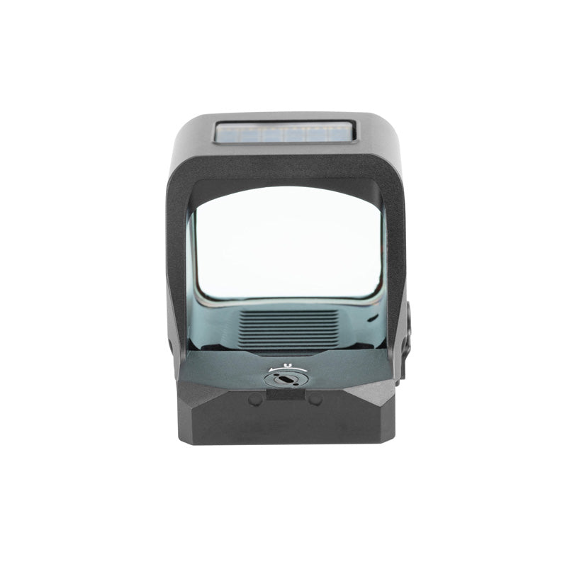 A forward-leaning integrated sunshade helps reduce glare and maintain strong reticle contrast in bright lighting conditions, giving shooters a clearer view of both the target and reticle. The refined housing and engraved Holosun logo complete a modern, competition-focused design while retaining compatibility with the industry-standard RMR footprint.