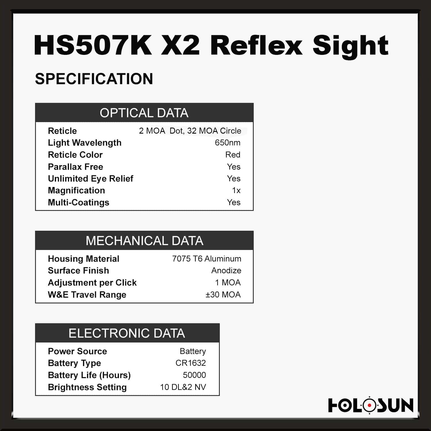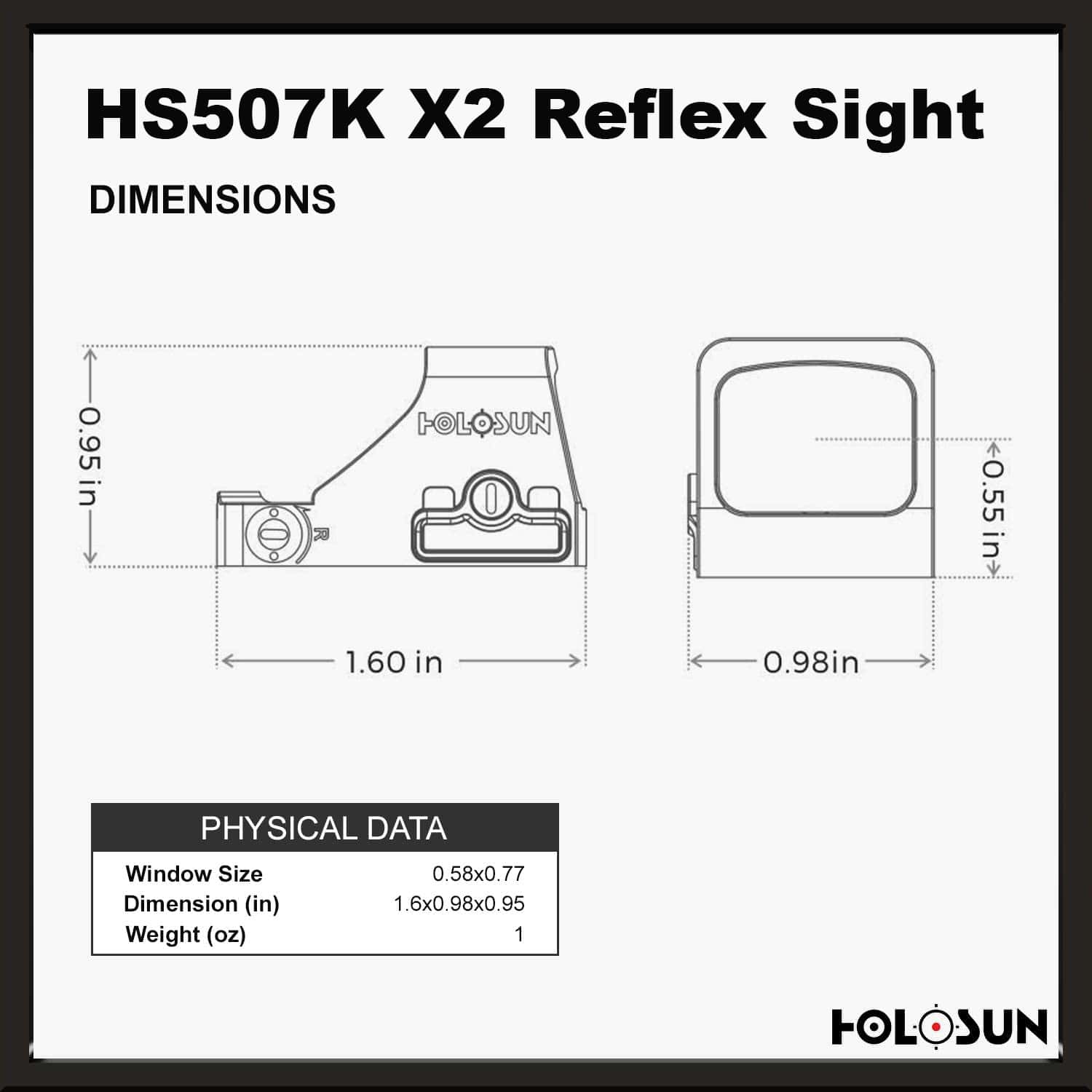 Holosun 507K X2 Red Dot, 32 MOA Ring & 2 MOA Red Dot, K Series Footprint (Modified RMSc), MRS Reticle, Side Battery - HS507K-X2 is backordered and will ship as soon as it is back in stock.