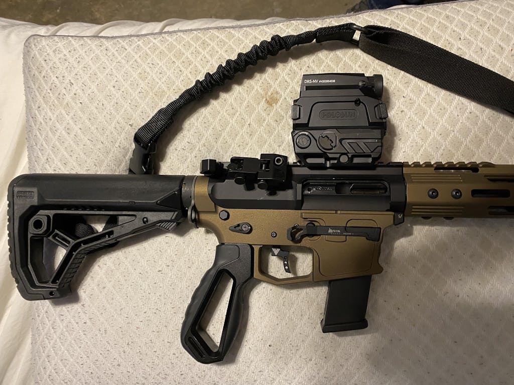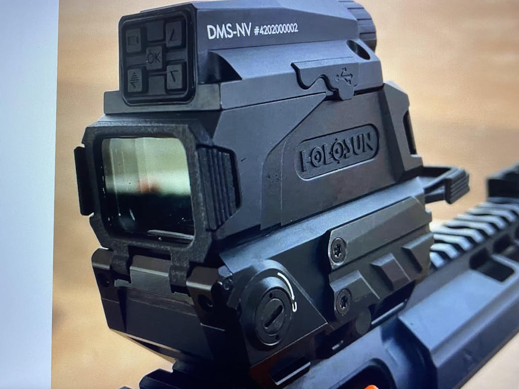 The DRS-NV’s night vision function amplifies available light, offering clarity in low-light settings, such as moonlight or starlight. For fully dark environments, an IR illumination source, like Holosun’s LE321 or LS321 laser devices, can be added (be sure to check local laws regarding IR device usage).