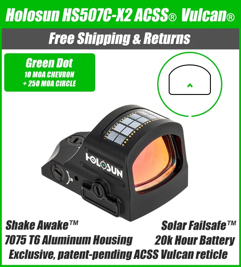 Holosun 507C X2 Green Dot ACSS Vulcan Reticle, RMR Footprint, Solar Failsafe - HE507C-GR-X2-ACSS