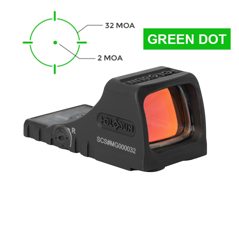 Holosun SCS MOS Green Dot Sight, MRS Reticle, Fits Glock MOS Slides (Not 43X/48), Solar Recharging Battery, Grade 5 Titanium Housing- SCS-M-GR is backordered and will ship as soon as it is back in stock.