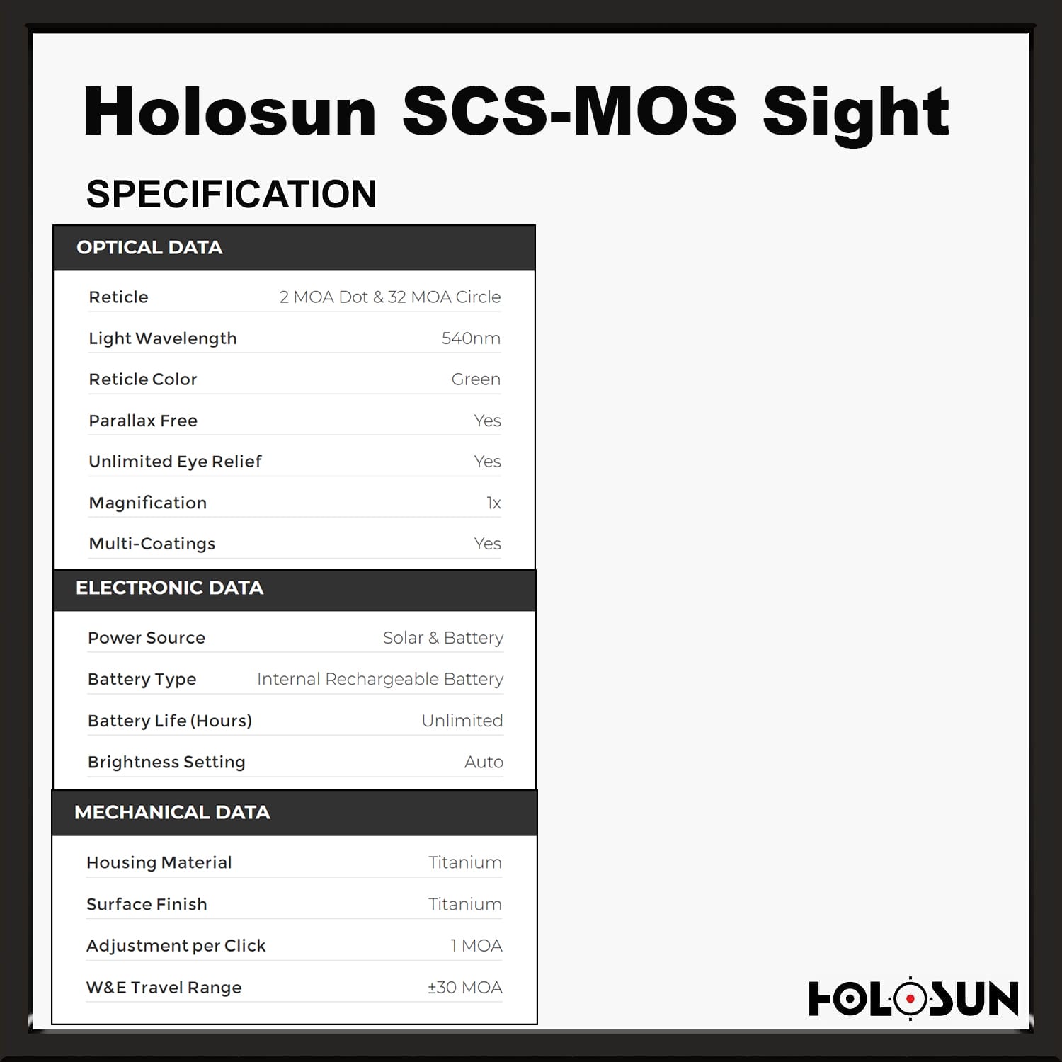 Holosun SCS MOS Specifications