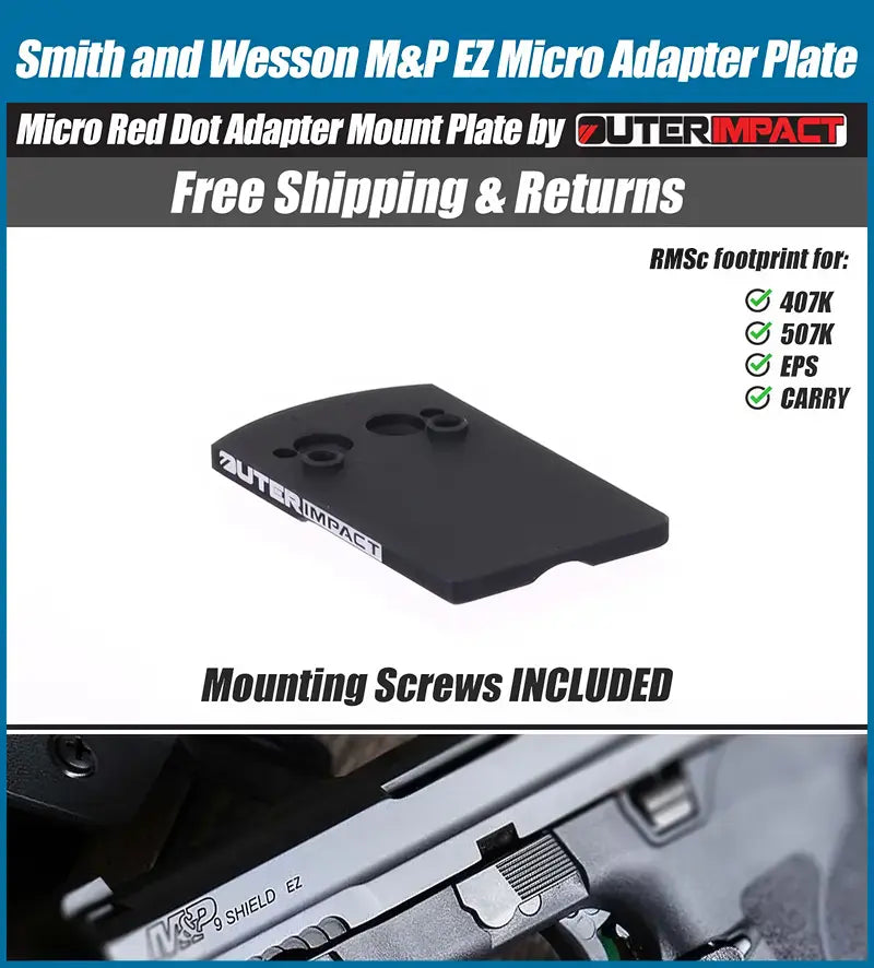 Smith & Wesson M&P 380/9mm EZ Micro Red Dot Adapter Mount Plate - OuterImpact is backordered and will ship as soon as it is back in stock.