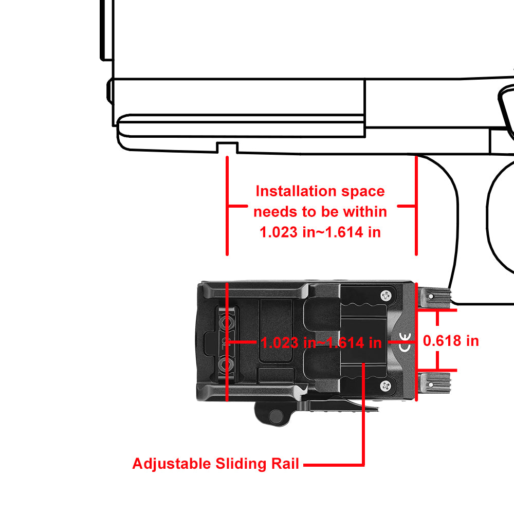Adjustable Rail: Slide the rail adapter back and forth freely to fix the light in the desired position