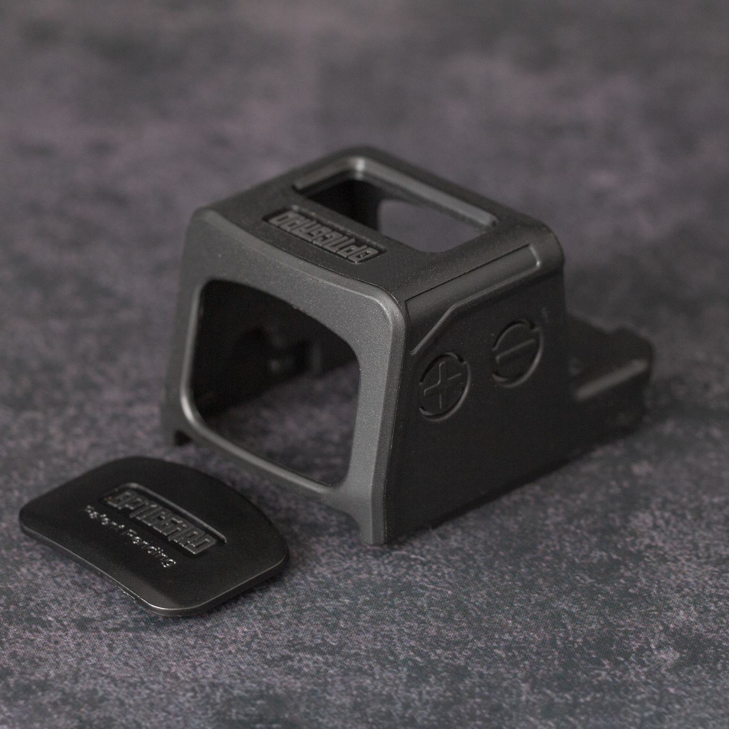- OpticGard Covers may not be compatible with backup sights that are mounted in front of the optic. Sufficient space is needed for the cover to latch onto the front of the optic housing.
