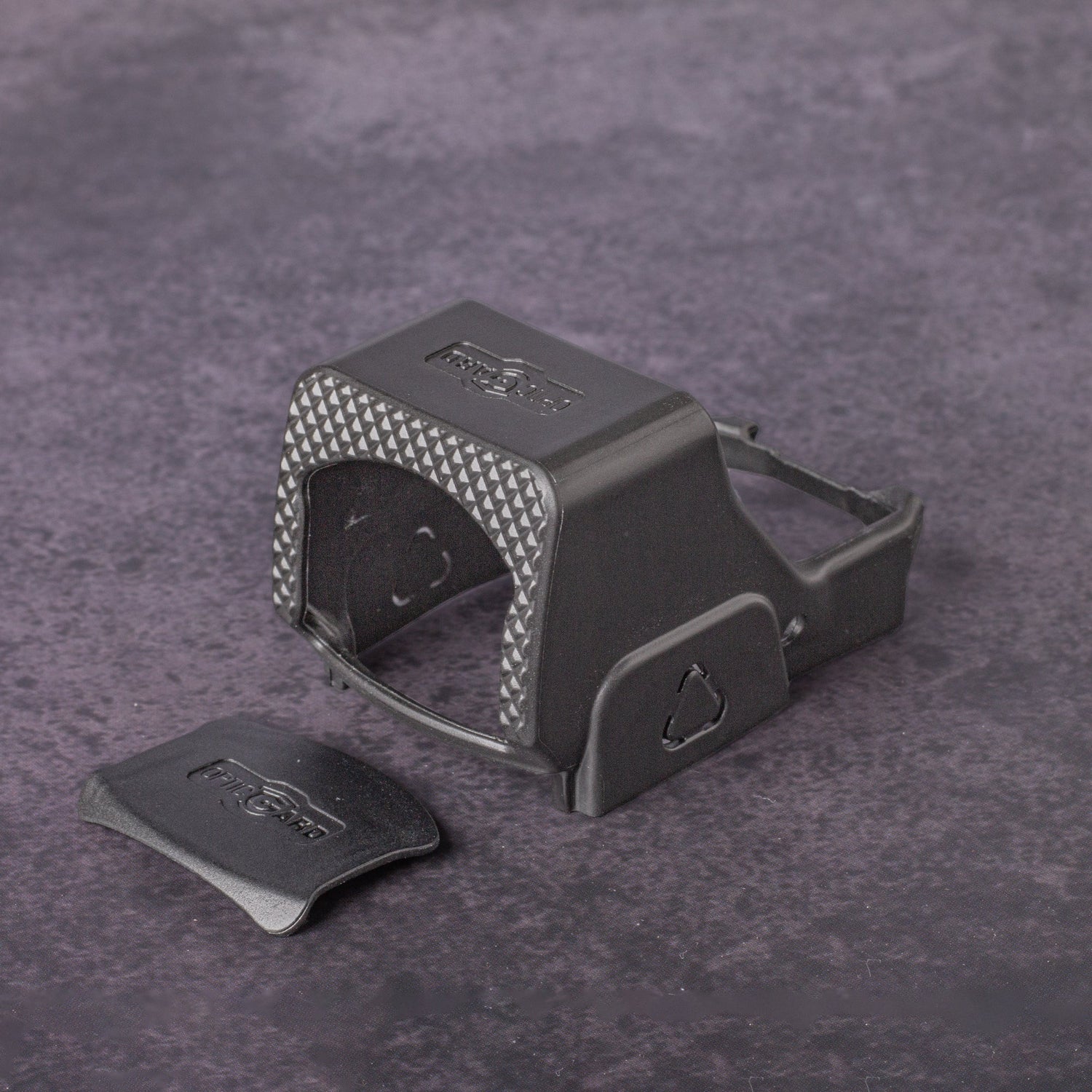 - OpticGard Covers may not be compatible with backup sights that are mounted in front of the optic. Sufficient space is needed for the cover to latch onto the front of the optic housing.