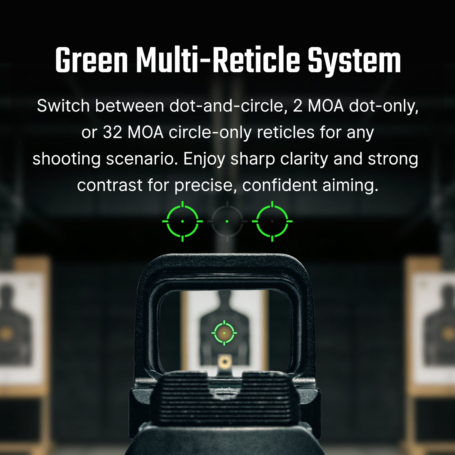 - MRS Reticle: 2 MOA Dot + 32 MOA Circle or toggle between just a dot or just a circle.