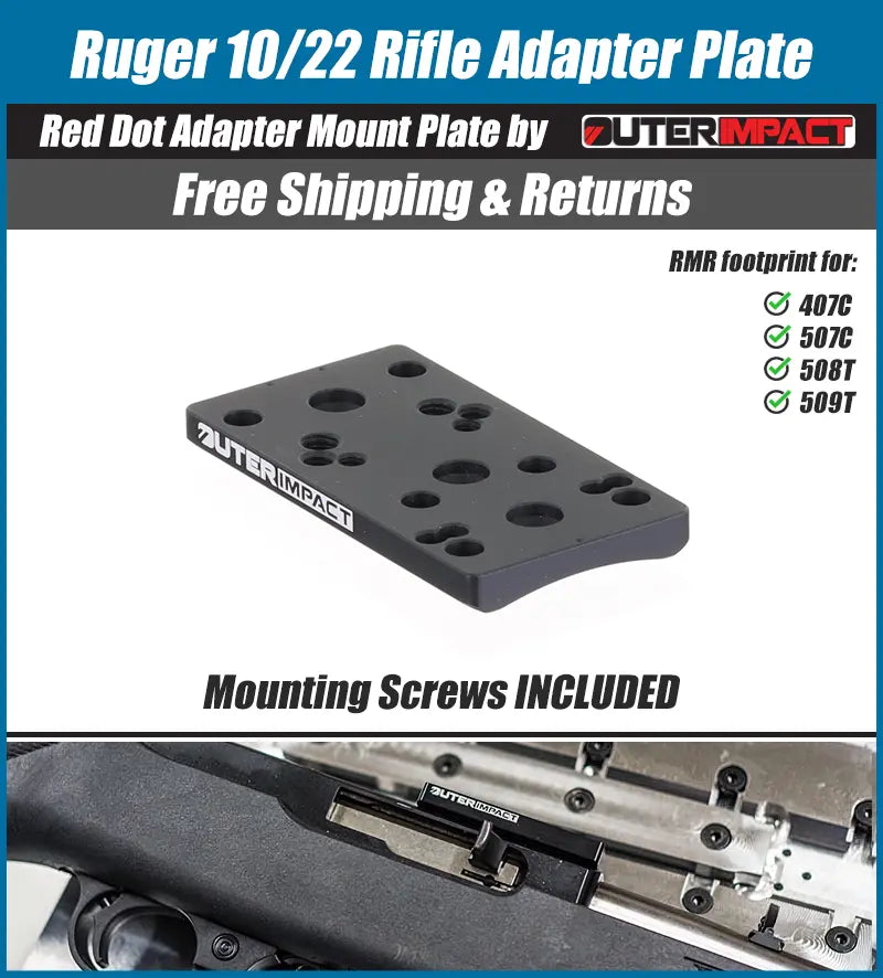 Ruger 10/22 Rifle Red Dot Adapter Mount Plate - OuterImpact is backordered and will ship as soon as it is back in stock.