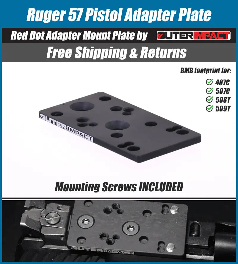 Ruger-57 Pistol Red Dot Adapter Mount Plate - OuterImpact is backordered and will ship as soon as it is back in stock.