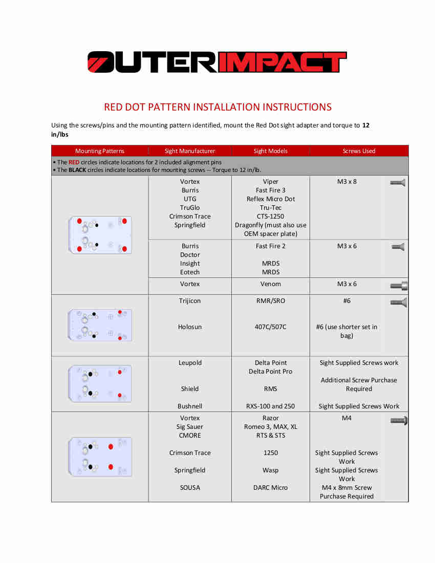 Compatible Red Dot Sights (Mounting Screws INCLUDED):