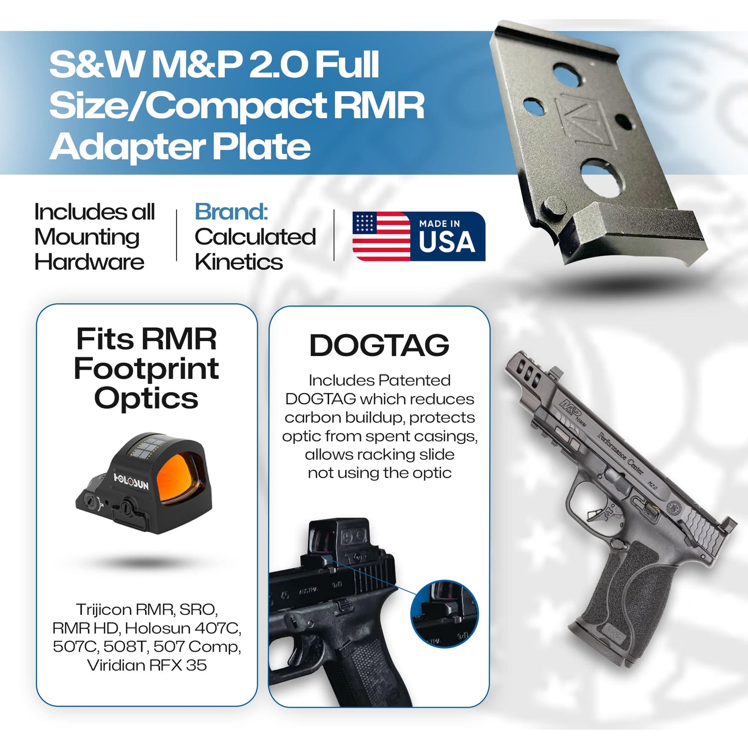 S&W M&P 2.0 Full Size/Compact RMR Adapter Plate (Does Not Fit SRO) - Aluminum - DOGTAG - Calculated Kinetics
