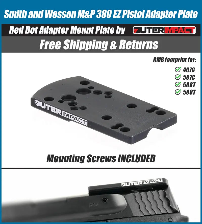 Smith & Wesson M&P 380/9mm EZ Pistol Red Dot Adapter Mount Plate - OuterImpact is backordered and will ship as soon as it is back in stock.