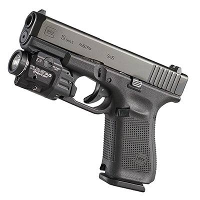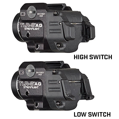 The Streamlight TLR-8AG FLEX is a compact 500-lumen weapon light and green laser combo designed for use on pistols or small pistol caliber carbines. It features ambidextrous controls that wrap around the trigger guard for easy activation and comes with low and high activation switches. The integrated rail clap ensures the pistol light is low profile to the frame and is compatible with most rail mounting systems. A safe off button prevents accidental activation during storage to ensure a long battery life.