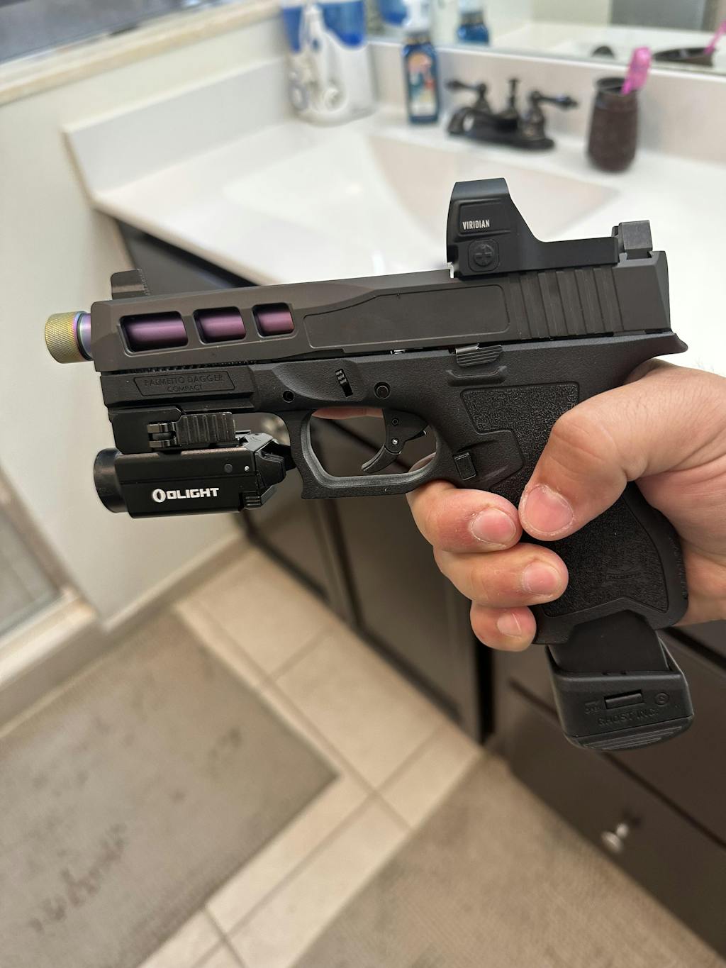 The Viridian RFX 25 is a great green dot sight from a name you can trust. It has Docter footprint, shake awake, a strong aluminum housing, long battery life, and a low deck high for more iron sight co-witnessing.